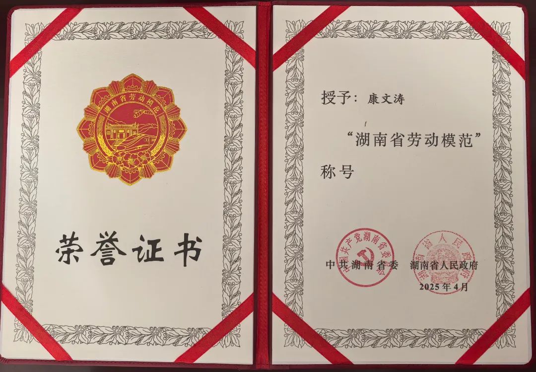 我司技術(shù)研發(fā)中心總監(jiān)、高級(jí)工程師康文濤獲評(píng)“湖南省勞動(dòng)模范”稱號(hào)!